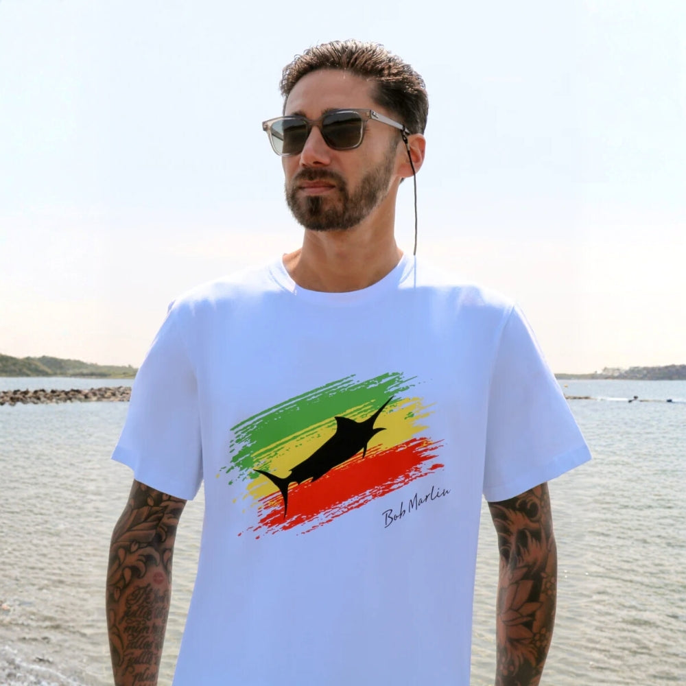 Embrace the One Love For Fishing lifestyle with Bob Marlin™ Rasta theme T-shirt, designed for anglers and adventurers. Crafted with care, this shirt blends fashion and functionality seamlessly.
