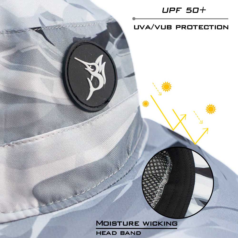 The Bob Marlin bucket hat offers great sun protection, is water resistant, and comes with air ventilation panels. Foggy, rainy or sunny; the Bob Marlin Fishing Hat has got you covered!