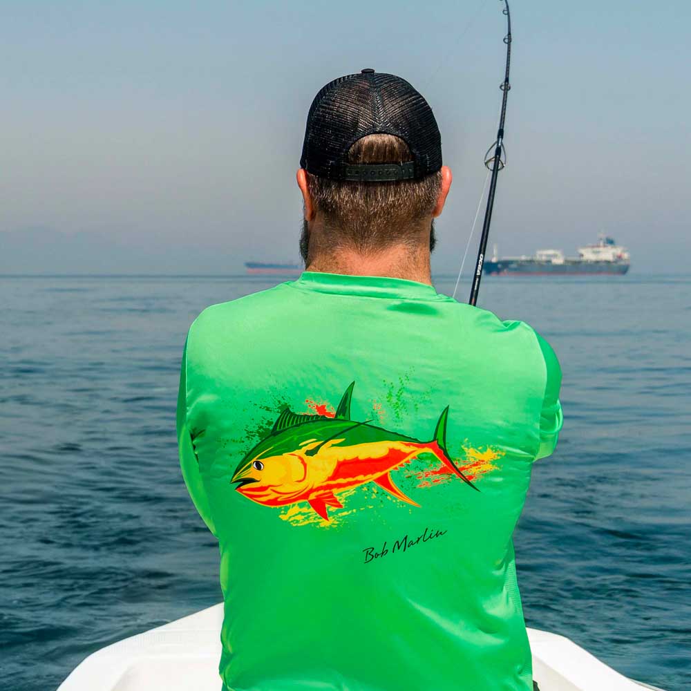 Elevate your fishing experience with the Rasta Tuna Performance Shirt – a fusion of style and functionality. This iconic image was taken on one of the #BobMarlinTeam fishing trips, and a tattoo artist created the Rasta inspired artwork of the picture.
