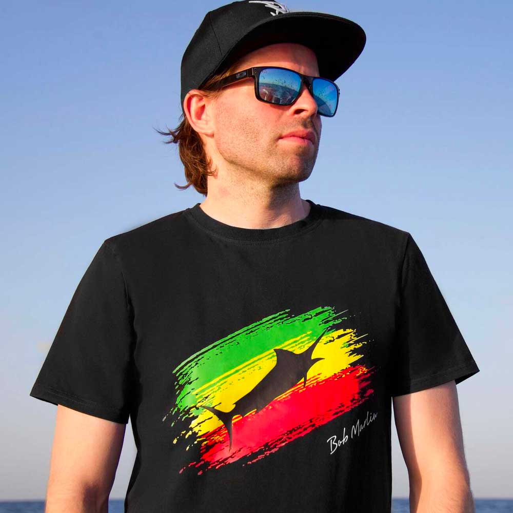 Embrace the One Love For Fishing lifestyle with Bob Marlin’s Rasta theme T-shirt, designed for anglers and adventurers. Crafted with care, this shirt blends fashion and functionality seamlessly.