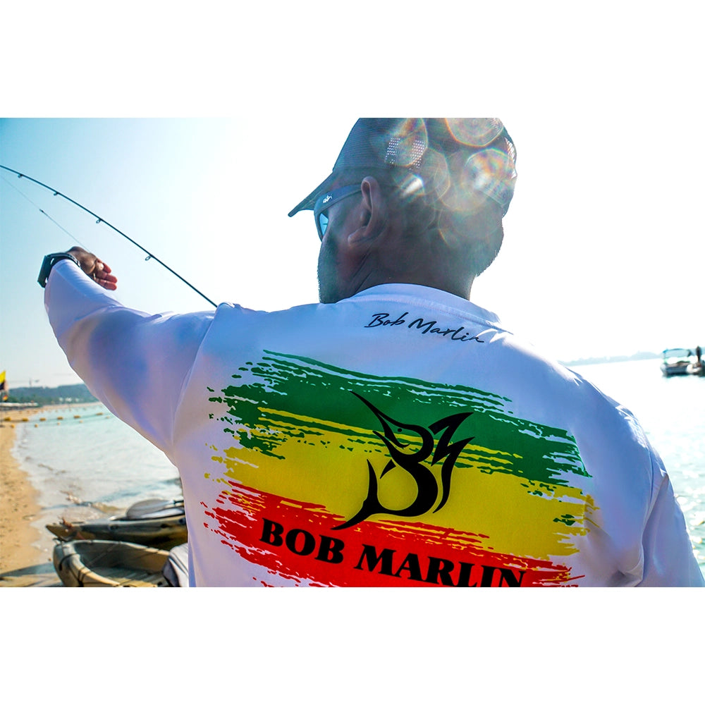 Elevate your fishing experience with the Rasta Flag Performance Shirt a fusion of style and functionality. The Rasta Flag colors add a stylish touch to the Bob Marlin collection of performance shirts.