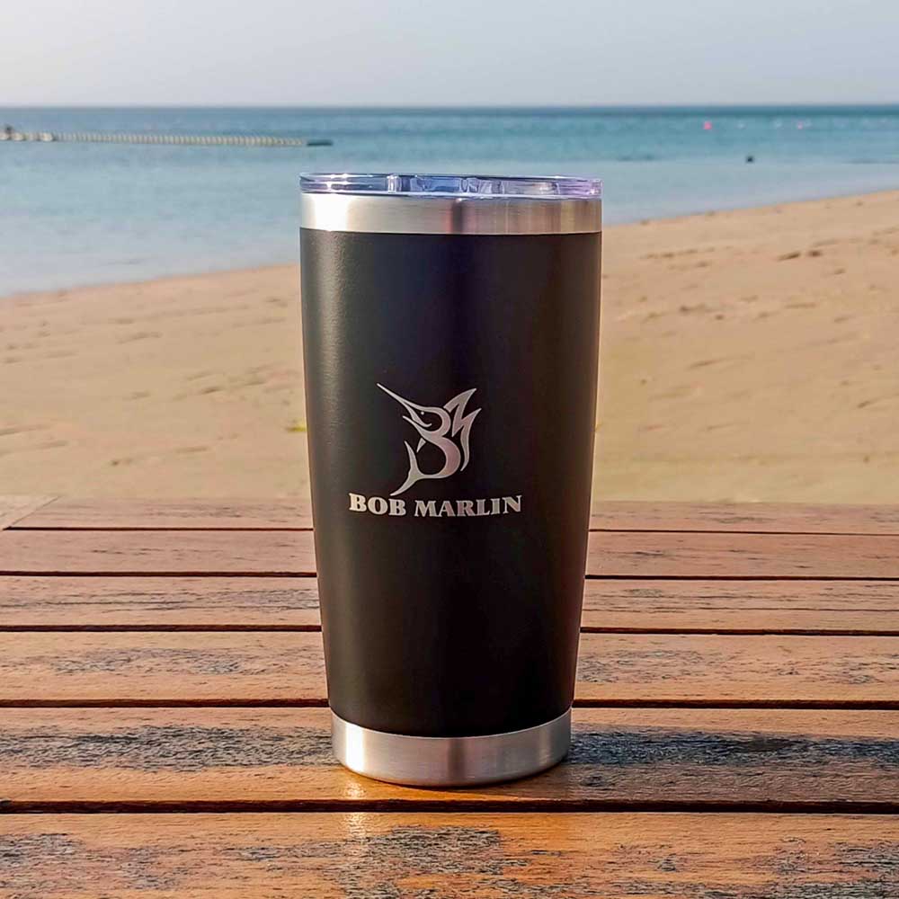 The Bob Marlin Tumblers are made of stainless steel and are dishwasher friendly. Keep your hot drinks hot, and your beverages cold with the Bob Marlin Tumblers!