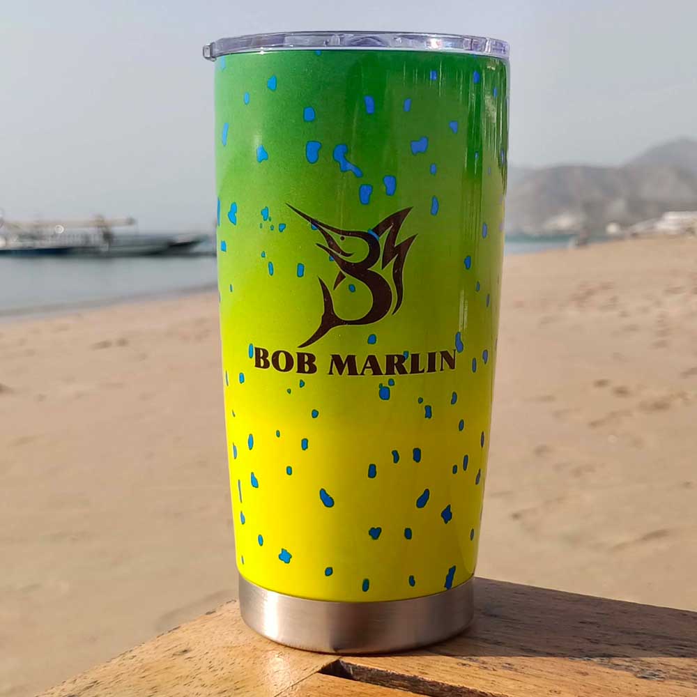 Sip in style on your outdoor journey with the Bob Marlin Mahi Fish Tumbler. This 20 oz stainless steel tumbler not only features a captivating mahi mahi fish design but also boasts double-wall vacuum insulation. It keeps your beverages icy cold for up to 12 hours and piping hot for 6 hours, ensuring your drinks are at the perfect temperature no matter where your adventures take you.