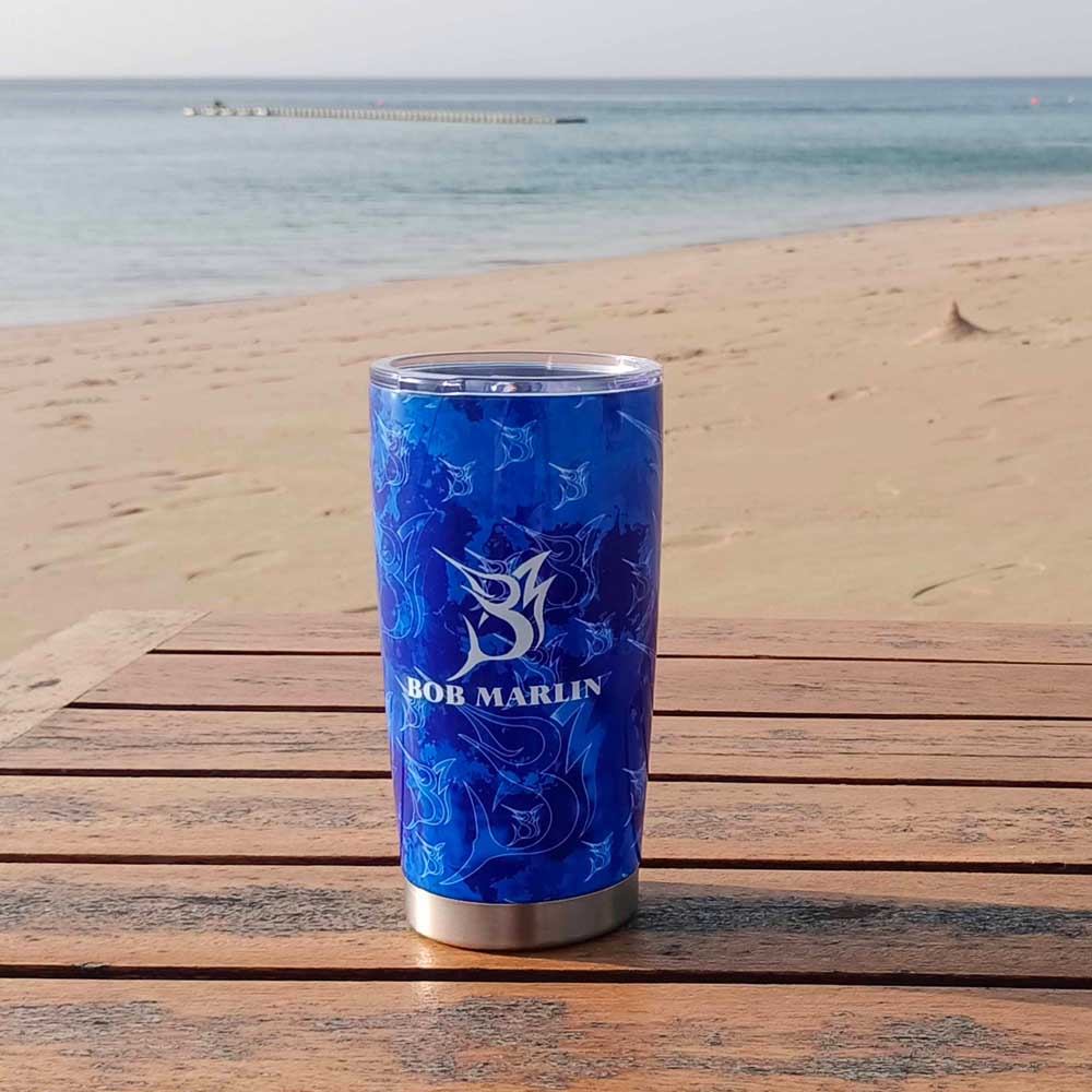 The Bob Marlin Tumblers are made of stainless steel and are dishwasher friendly. Keep your hot drinks hot, and your beverages cold with the Bob Marlin Tumblers!
